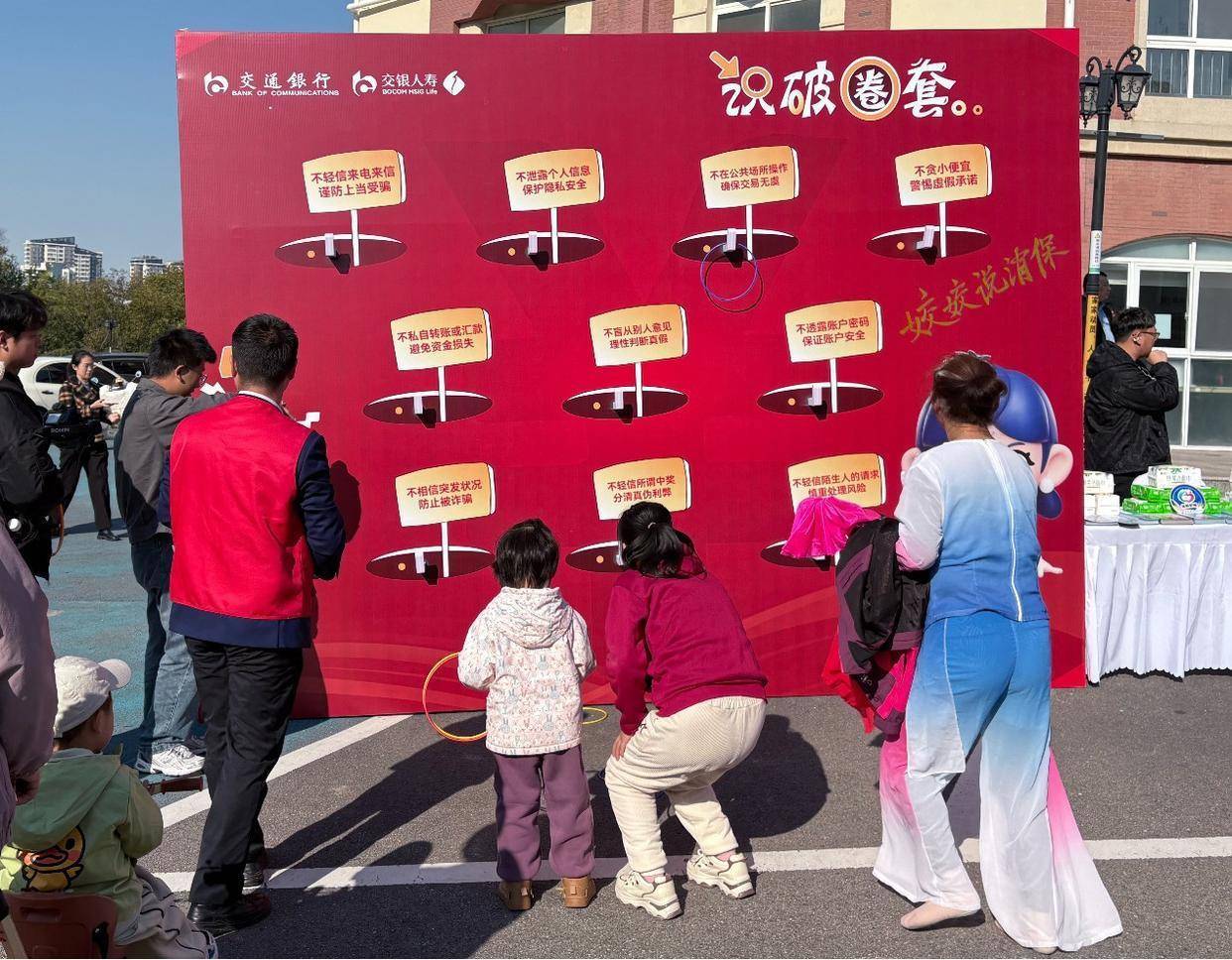 恰逢重阳佳节临近,揭牌仪式后,“小镇重阳敬老集市”迅速掀起热潮,人头攒动、笑语盈盈。“翰墨飘香,喜迎重阳”书法专区内,书法家挥毫泼墨,将“防范诈骗”“理性投资”等消保关键词融入重阳祝福,墨香与反诈理念交织,居民们争相领取心仪作品;“巧手生花”剪纸专区里,居民跟着剪纸艺人创作“防骗盾牌”主题剪纸,防骗理念在动手实践中深入人心;“识破‘金融圈套’趣味游戏”专区前,“金帆护航”志愿者指着问答板提醒:“凡是宣称‘保本保收益’‘高收益零风险’的,大概率是诈骗!大家一定要多留个心眼。”通俗直白的讲解让现场老人频频点头。