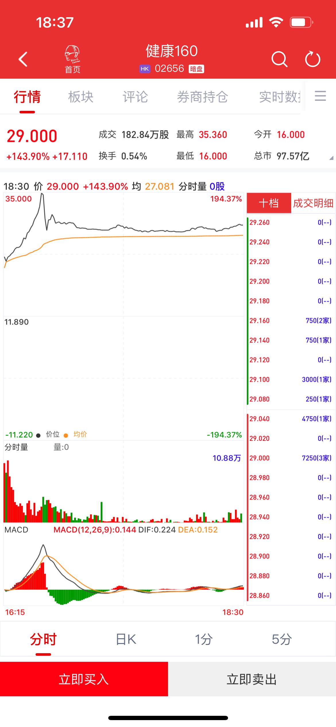 健康160(02656)将于9月17日(周三)在香港挂牌。截至收盘,利弗莫尔证券暗盘交易显示报价29港元,较招股价11.89港元上涨143.9%,每手250股,不计手续费,每手赚4277.5港元。